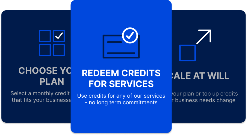 The pricing model is designed to be simple. Buy a number of credits that can be used on any service and then top up as you need more.